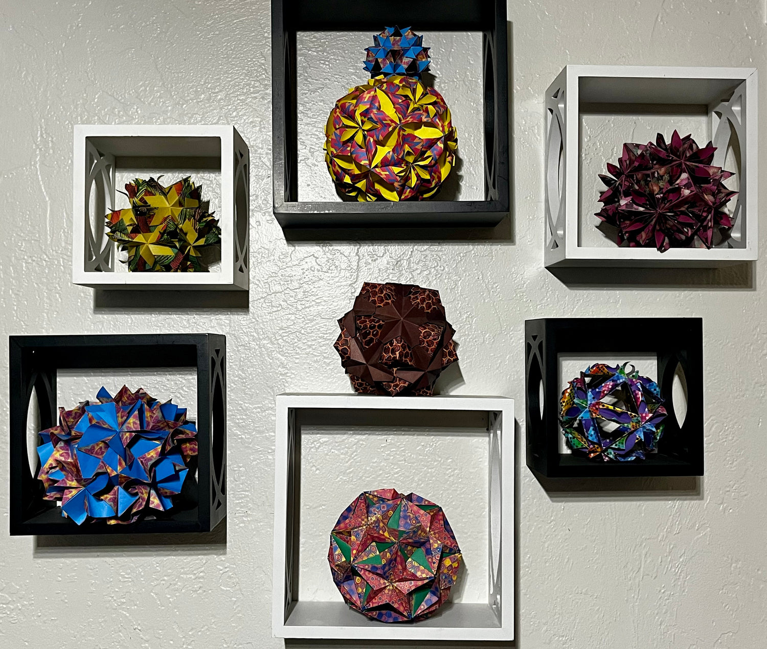 Modular origami models ranging 8 - 10 inches in size.