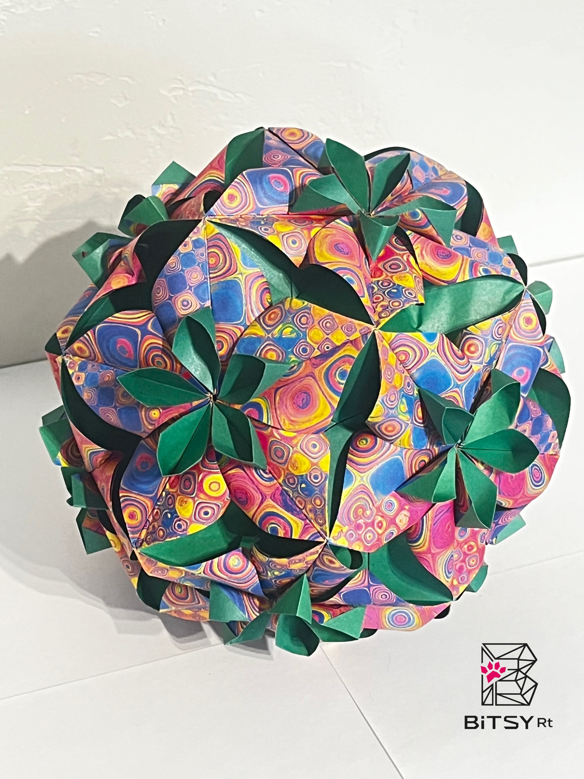 Small but mighty, FLOWER POWER packs a punch of botanical beauty. This 6.5-inch Kusudama sphere features the Anise model by E. Lukasheva, where delicate flower-like patterns bloom across the surface in a celebration of nature's geometry.