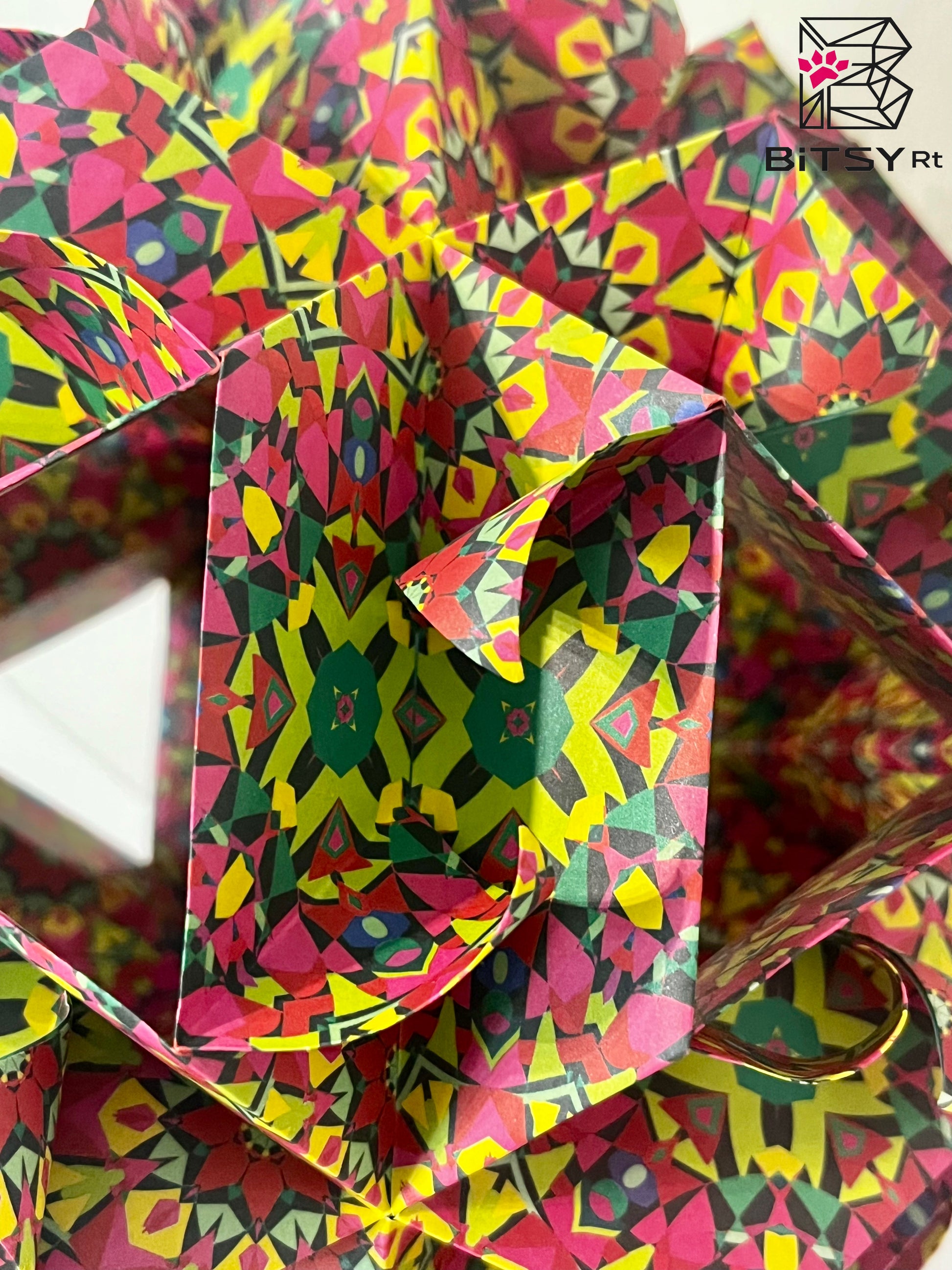 Perfect for collectors of geometric art, origami enthusiasts, or anyone seeking a unique focal point for their home or office. The intricate folding creates a three-dimensional kaleidoscope effect that's truly hypnotic — hence the name. Display it where light can catch its dimensional patterns for maximum impact.